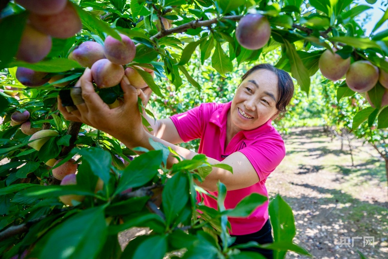 当董凤萍清理稻田的时候,乌兰村村民杜世晶家庭院里的李子树已经快被周边的客人采摘一空。“我家这李子出了名儿的好吃,有时候我去集市卖,有时候游客来家里采摘,每年都能收入4000多元。”杜世晶说。