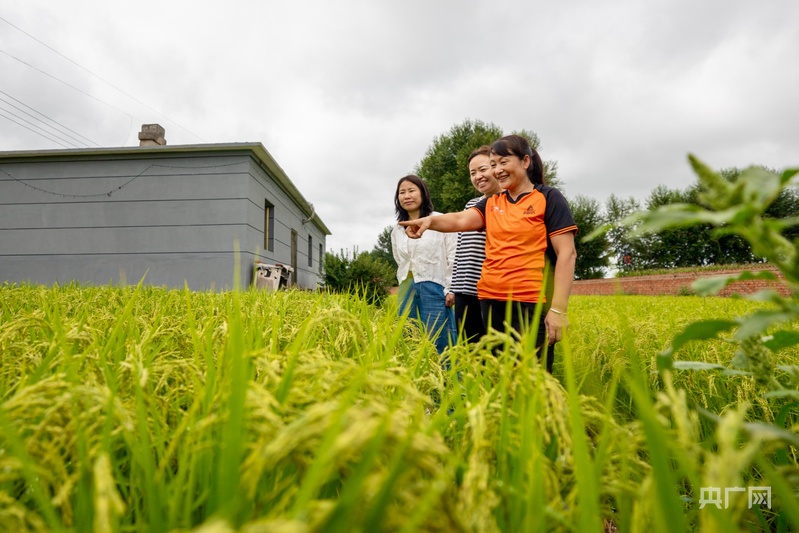 在向阳村董凤萍家的院子里,绿油油的水稻长势良好,饱满的稻穗正在灌浆。董凤萍一边清理杂草一边说:“院里种了2亩水稻,能产2000多斤稻米,大部分都预订出去了,大概有6000多元收入。”