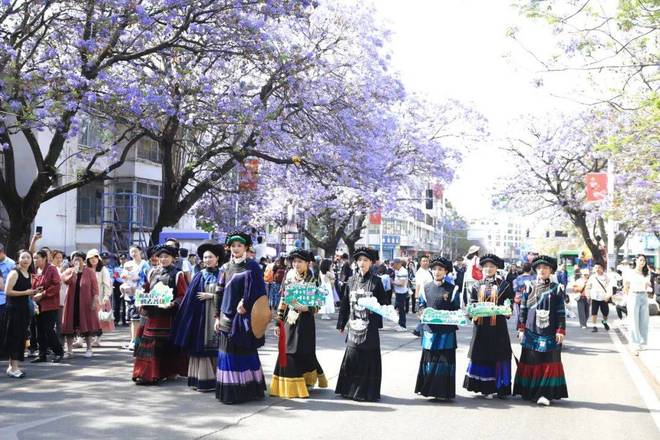 普雄文旅推介官候选者们走上西昌街头,穿梭在蓝花楹树下,打卡留影,向游客热情推介越西的风土人情。