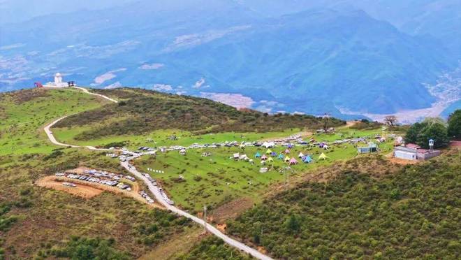 在宽敞的草坪上,一顶顶天幕和露营帐篷点缀其间,大人小孩往来穿梭,快乐忙碌。